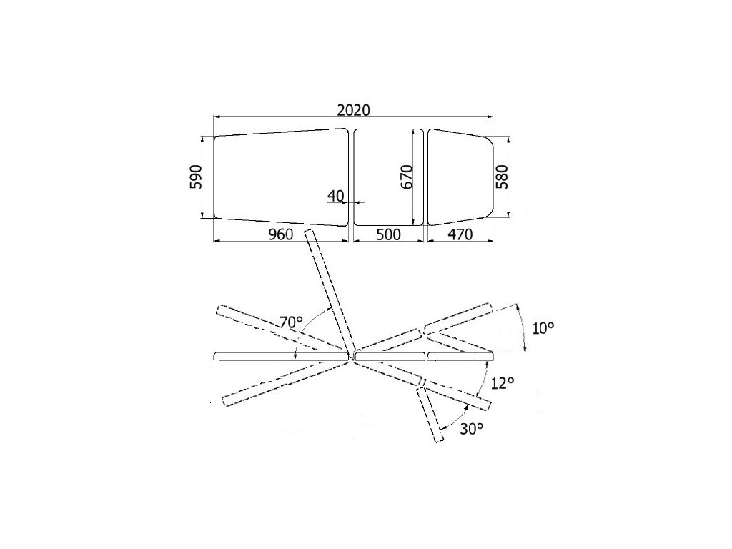 nastavenie uhla opierky na ruky (horizontálne) : 180 °