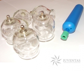 Vákuové sklenené banky s pumpou v rovnakej veľkosti.Priemer banky je z vonkajšieho okraja 4cm.,,Výrobok bol ocenený Zlatou medailou v roku 1994.,,Pumpa je dostupná aj samostatne ...