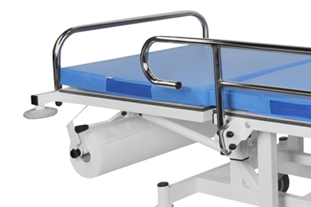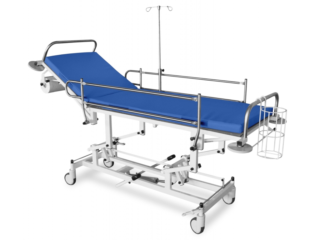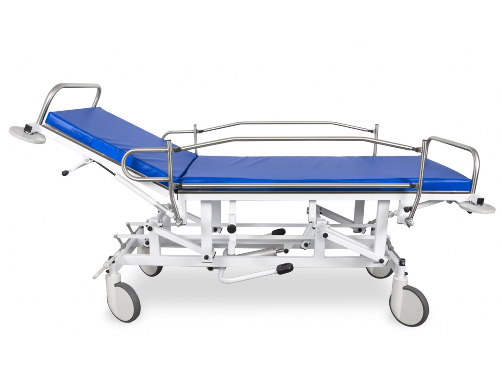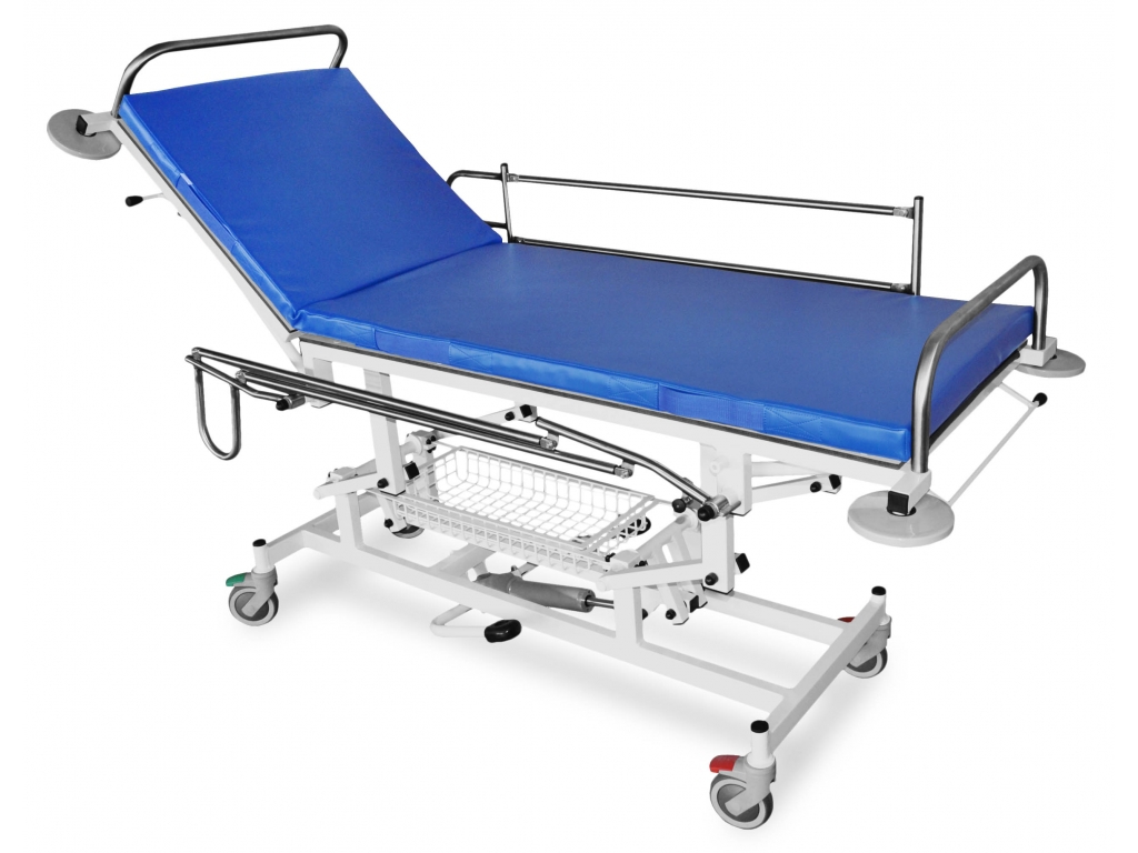 Transportné lehátko na prevoz chorých ležiacich pacientov medzi miestnosťami, ošetrovňami v oddeleniach nemocníc a klinikách. Konštrukcia je z oceľovej jokloviny upravená bielou farbou a odolným lakom proti poškriabaniu. Vymeniteľný matrac je odolný voči poškriabaniu a prerezaniu. Pod matracom je priesvitná doska HPL pre räntgenové lúče. Nastavenie uhla lôžka (pozícia Trendelenburg). Výška lehátka sa nastavuje pomocou hydraulického valca nožným pedálom. Opierka hlavy je nastaviteľná pomocou plynovej pružiny. Zo spodnej ležadlovej časti sú na rohoch 4 blatníkové disky. Po stranách ležadlovej časti sú bočné lišty a držadlá z nehrdzavejúcej ocele.